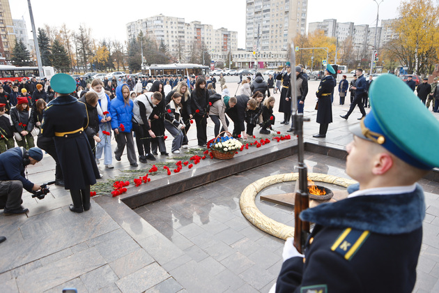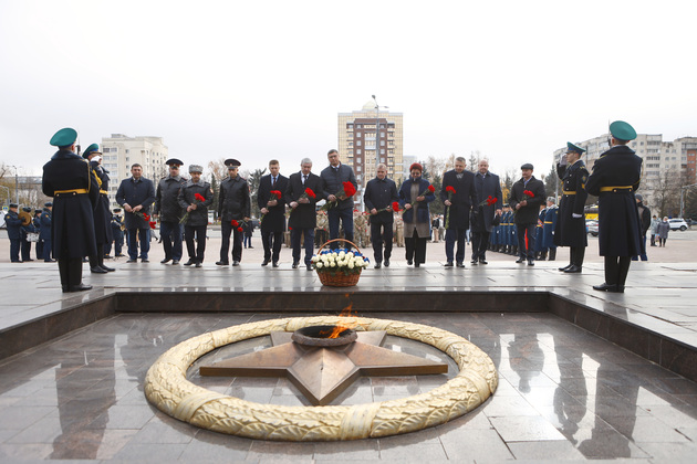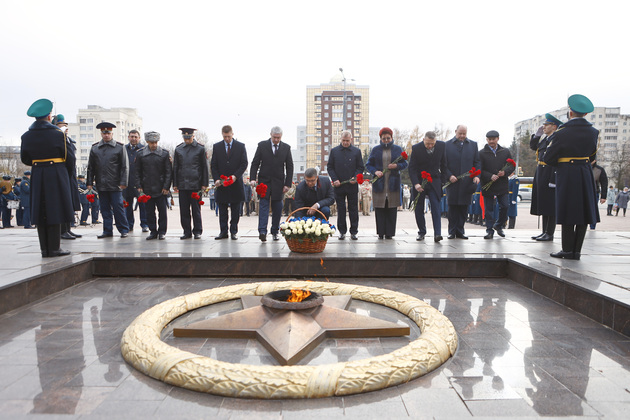 После торжественной части акции наступила минута молчания, а затем - возложение цветов к Вечному огню. Военно-патриотическая акция продолжилась в Областном дворце культуры и искусства, где состоялись тематическая выставка и концерт.