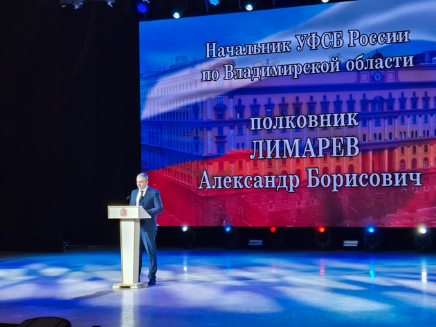 Открыл торжественную часть мероприятия со сцены начальник УФСБ России по Владимирской области, полковник Александр Лимарев. Он рассказал о перспективах поступления на военную службу в органах безопасности: