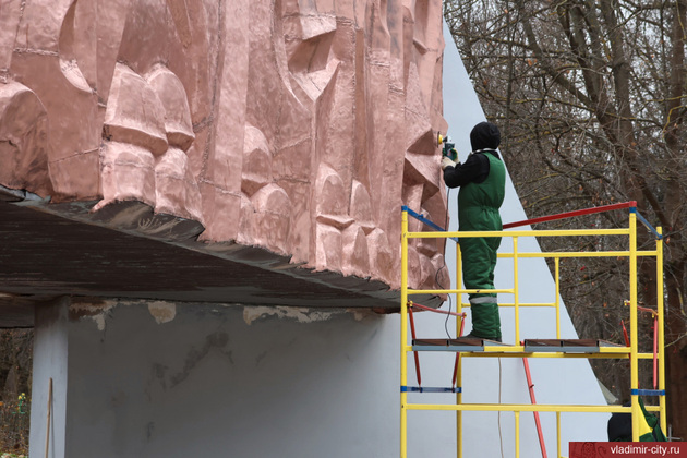 Ремонт начался в конце августа, сейчас завершена очистка медных барельефов в районе Огня Памяти.