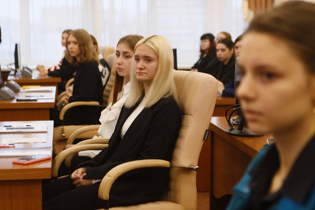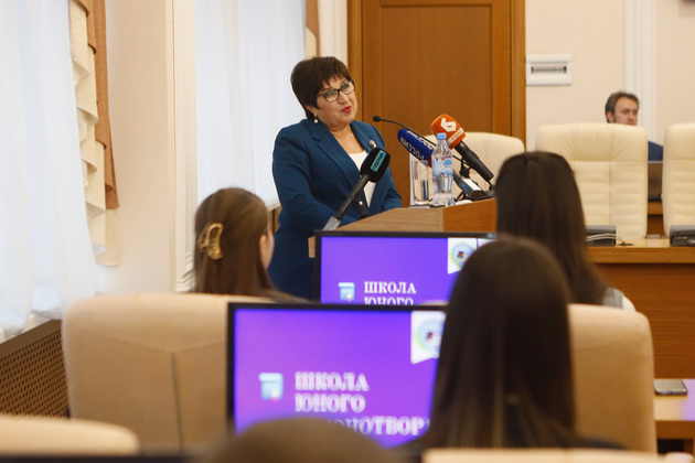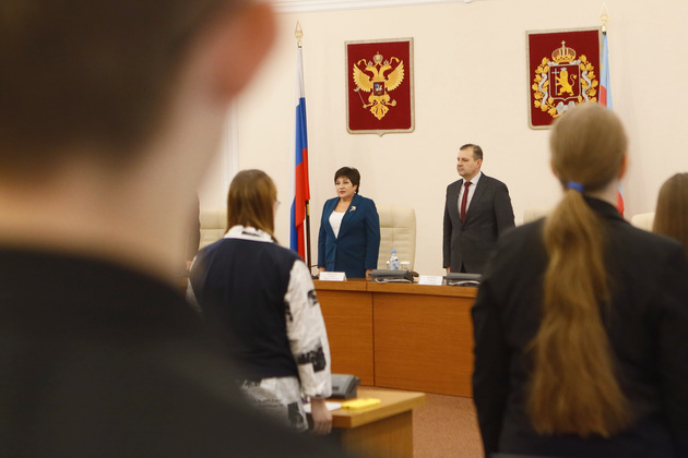 Ольга Хохлова призвала ребят прочувствовать, что они собрались в том же зале, где областные парламентарии принимают законы, по которым живет регион.