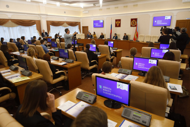 Первое занятие нового сезона было вводным, и началось торжественного открытия. А в этот год 30-летия Законодательного Собрания образовательный проект открылся уже в восьмой раз. Воспитанников Школы юного законотворца набралось 49 - юношей и девушек, которые учатся в школах и колледжах. Эту активную молодежь привел под крыло областного парламента интерес к законодательству, юриспруденции, устройству государственной власти.