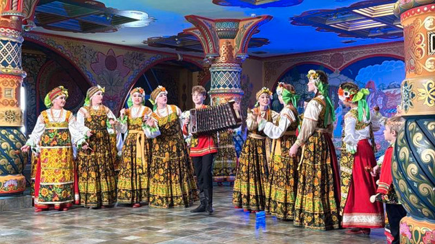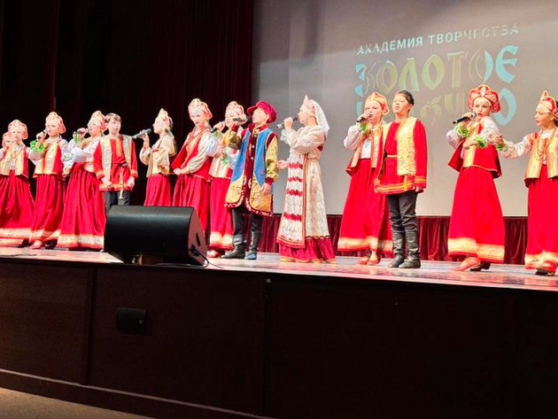 А детская студия очень задорно спела попурри из русских народных песен, поиграла на инструментах и сплясала!