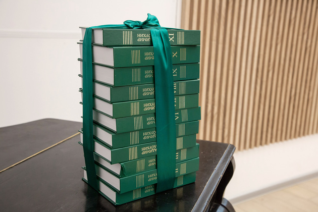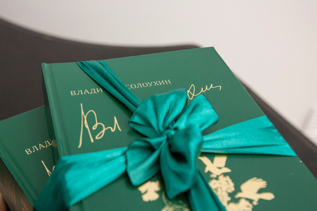 Выступил глава Собинского муниципального округа Александр Разов. Он представил грандиозное собрание сочинений Владимира Солоухина в 11-ти томах, осуществленное собинцами.