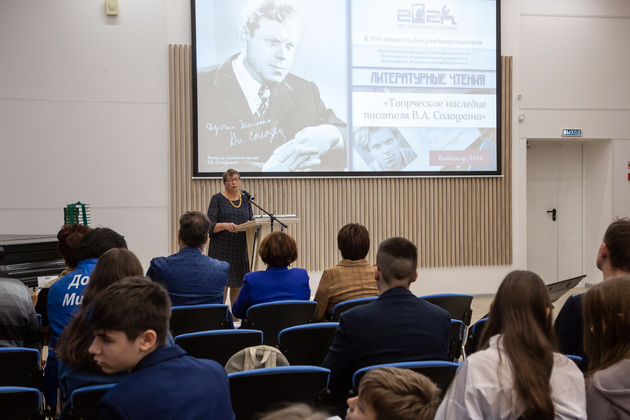Завкафедрой «Русский язык» Педагогического института ВлГУ профессор Марина Пименова говорила о топонимии Владимирского края в произведениях Солоухина. В основном, на материале «Владимирских проселков». Большой вклад в исследование внесли студенты, пересчитавшие все названия деревень, рек и т.д. у Солоухина.
