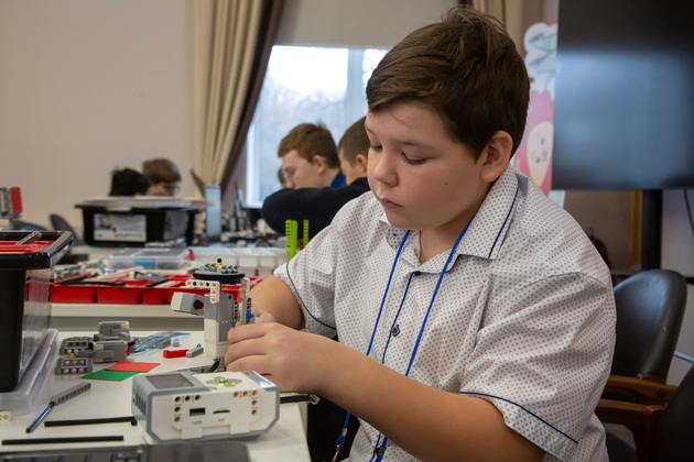 Во второй день прошло «Робосумо». Это вводное соревнование для участников, чтобы познакомить их с программированием. Обычно в первые годы обучения, как только ребенок приходит в кружок робототехники, делают робота для робосумо. Есть два робота, а задача участника столкнуть противника с поля. Это быстрее забава, веселая игра, – рассказал Максим Кочетков, организатор конкурса.