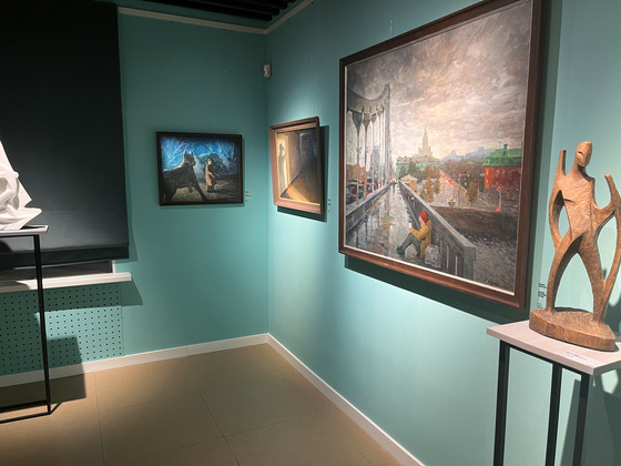 Камерное и уютное пространство в самом центре города, у Золотых ворот продолжает творческие диалоги. На открытии здесь были мэтры - Французов и Дик, а сейчас более живой диалог, современный - между Левахиным и Цагареишвили. Они друзья, которые почти год планировали выставиться вместе. И получилось.