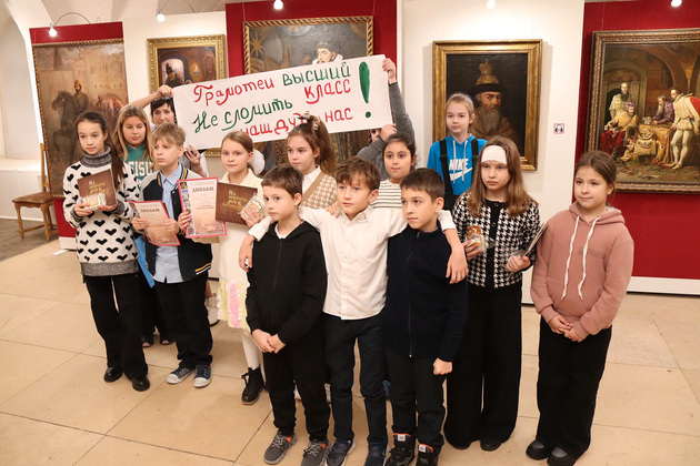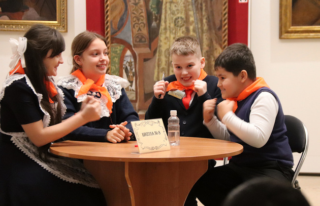Конечно, вопросы составлялись с учетом возраста, но на обоих этапах они были довольно сложны. В числе прочего «младшим» предстояло подготовить разворот средневековой книги, правильно назвать составляющие красной и черной краски, а также детали печатного стана, вспомнить фамилии его изобретателя и мастеров, трудившихся в Москве и Слободе. «Старшие» пытались определить цели введения книгопечатания в России, назвать технологический прием, позволивший добиться высокого качества печати, подобрать верный текст к миниатюре и найти символ Московского Печатного двора.