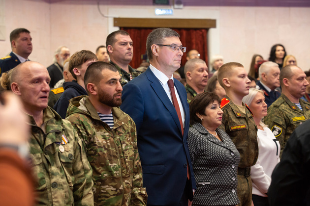 - В День Героев Отечества мы собрались, чтобы вместе вспомнить и отдать дань уважения и благодарности тем, кто совершил и совершает выдающиеся поступки во имя Родины, спасения ближних, ради мира и благополучия на нашей земле. Здесь присутствуют главные герои наших дней - ребята, которые сражаются на специальной военной операции, и семьи наших героев. С некоторыми из ребят я встречался недалеко от линии фронта, и мы не понаслышке знаем, как важно чувство локтя, чувство поддержки от семей, от земляков для тех, кто выполняет свою боевую работу, - сказал Александр Авдеев.