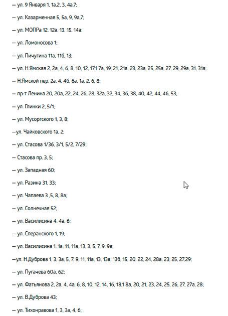 Отключение теплоснабжения запланировано уже на 21:00 16 декабря 2024 года и до 12:00 17 декабря 2024 года. полный список отключаемых домов см. ниже. Компания приносит свои извинения за доставленные неудобства.