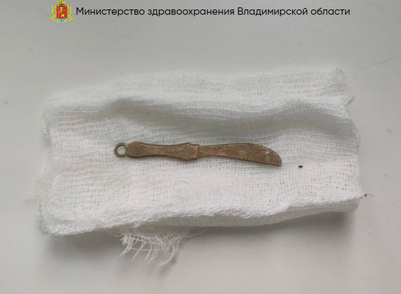 Минздрав Владимирской области сообщает о спасении четырехлетнего мальчика без операции. Ребенка доставили в больницу с жалобами на боли в животе. Врач-эндоскопист без разрезов и проколов вытащил пятисантиметровый кинжал из кишечника пациента. Мальчик уже дома, чувствует себя хорошо.