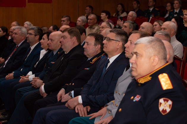 – Наши земляки и коллеги по зову сердца ушли добровольцами и участвовали в Специальной военной операции, и сегодня некоторые из них в отпуске и присутствуют в зале! Уважаемые коллеги, перед нами ежедневно возникает множество служебных задач, несмотря на многочисленные сложности, они успешно решаются, благодаря усилиям и стараниям всех сотрудников и работников нашего коллектива. Сердечно поздравляю с профессиональным праздником и благодарю вас за ежедневный добросовестный труд, слаженность и профессионализм, за верность долгу и профессии, а ваших близких за терпение и понимание. Желаю всем успехов в труде, мира и созидания, крепкого здоровья и семейного благополучия! Через несколько дней мы встретим новый 2025 год, который объявлен Президентом страны, Годом Защитника Отечества. Уверен, что все трудности и вызовы для нашей страны будут преодолены, – обратился к личному составу Алексей Купин.