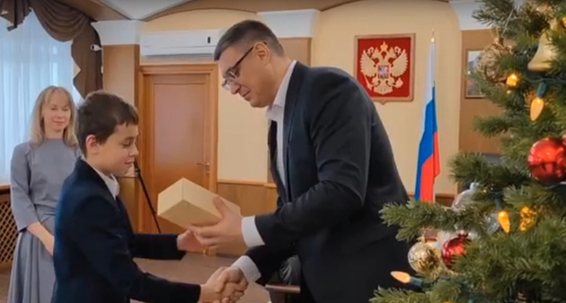 12-летний Женя Табуров из Владимира с мамой Еленой Сергеевной и крестной побывали в гостях у губернатора Александра Авдеева. Ребенок поучаствовал в акции «Движения первых» – написал о своей мечте получить на Новый год экшн-камеру. Глава региона это желание исполнил.