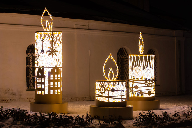 В этом году на украшение Владимира выделили 12,5 миллиона рублей. Новые праздничные объекты - уже традиция. На Театральной площади сверкают 6-метровая ротонда и звездочки. На пересечении улиц Большой Московской и Девической согревает домашним теплом уютный торшер. На Садовой площади светятся кубы с новогодними шариками. На пешеходной Георгиевской улице - горят большие свечи. Красота да и только!