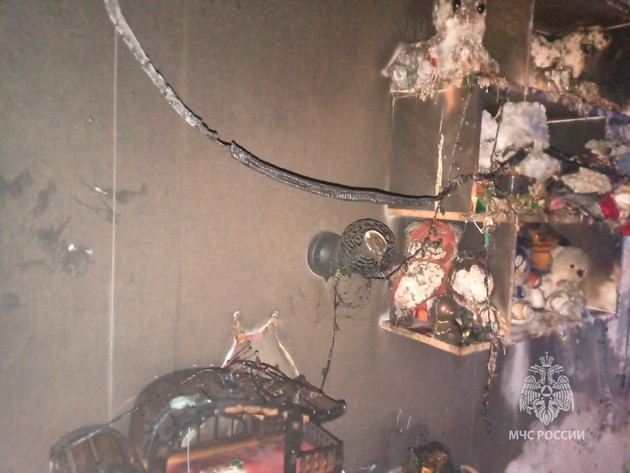 По фото с места ЧП видно, что пожар случился в детской комнате, скорее всего причиной стала неисправная электропроводка. Дознаватели МЧС устанавливают причину пожара.