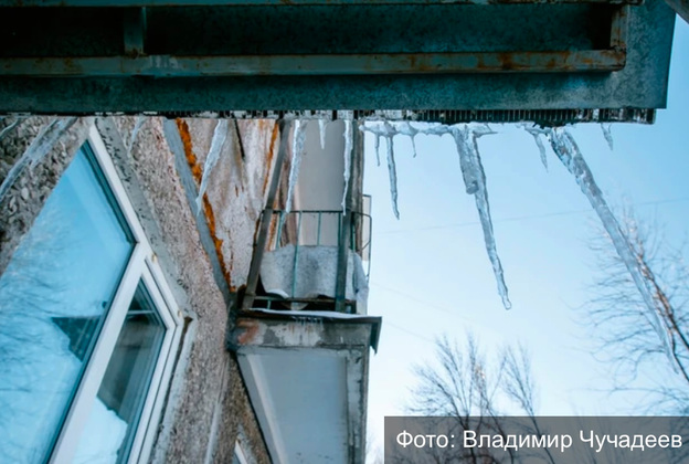 На крышах многоквартирных домов - снежные массы и сосульки, не расчищены детские площадки и тротуары.