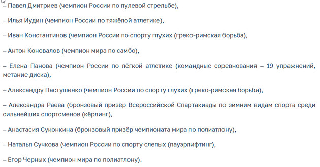 В числе награжденных юниоров и юниорок, а также юношей и девушек: чемпион России по спортивному ориентированию Олеся Гладилкина, серебряный призёр чемпионата России по боксу Рамазан Дадаев, серебряный призёр чемпионата России по полиатлону Екатерина Лапшакова, чемпион России по пулевой стрельбе Егор Пелевин и многие другие.
