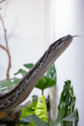 - Толя у нас парень спокойный, неагрессивный. Раз в полтора-два месяца кормим его пяти-шестикилограммовыми кроликами или курицей. «Добычу» подаем в умерщвленном виде. Тушки покупаем у фермеров. У змей замедленный метаболизм, поэтому такой периодичности питания достаточно. Скоро время кормления, поэтому наш Толик проявляет интерес к окружающему миру, - объясняет Александр.