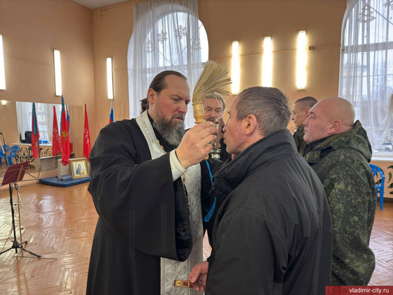 Священник Артемий Белоусов благословил мужчин и окропил святой водой