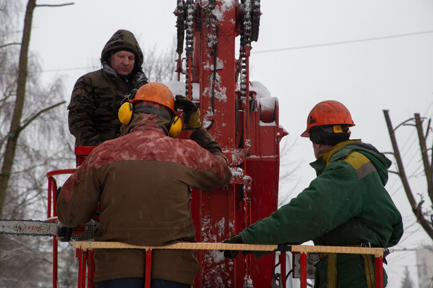 Как рассказал начальник службы ручной и механизированной уборки муниципального Центра управления городскими дорогами Дмитрий Фролов, на проспекте Ленина задействованы три автоподъемника и 15 дорожных рабочих зеленого хозяйства. В их арсенале - бензопилы, кусторезы, высоторезы, секаторы и установка-измельчитель.