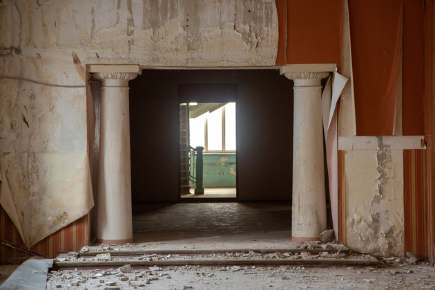 Видно, что долгие годы здание пустовало и, по сути, находилось без настоящего рачительного хозяина. Но ситуация меняется. В прошлом году из областного бюджета были выделены средства на утилизацию мусора, демонтаж старых кресел и оборудования. А вот и та самая мраморная лестница с балясинами, которая у входа встречала посетителей. Несмотря на следы забвения, она сохранила свое историческое очарование.