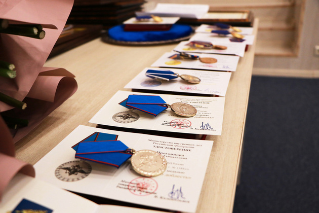 В ходе коллегии за высокие показатели в служебной деятельности, инициативу и профессионализм более 20 сотрудников награждены медалями МВД России ("За доблесть в службе", "За боевое содружество", "За заслуги в службе в особых условиях", "За трудовую доблесть", "Медалью МВД России И.Д.Путилина), почетными грамотами и благодарностями МВД России, благодарственными письмами Правительства Владимирской области.