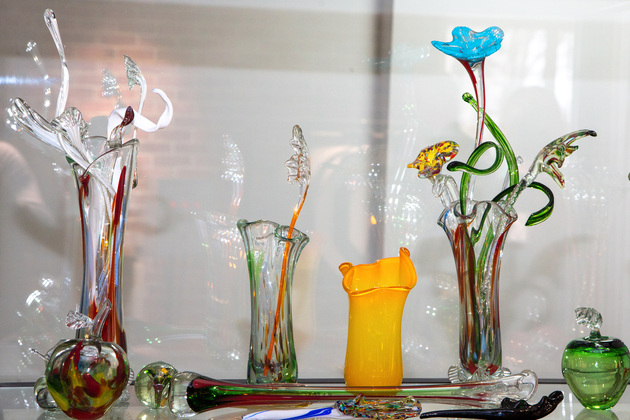 Мне показали готовые изделия, которые сделали студенты колледжа: на витрине красуются цветы разных форм и окрасок, изящные вазы и лебеди. Работы выглядят вполне профессиональными.