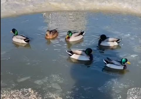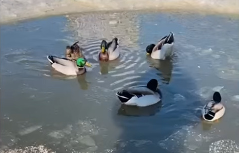 На Кукушкином пруду в городе осталось зимовать семейство крыкв.Спасатели из городского отряда заметили, как горожане пытаются подручными средствами - топорами и граблями сделать им побольше полынью.