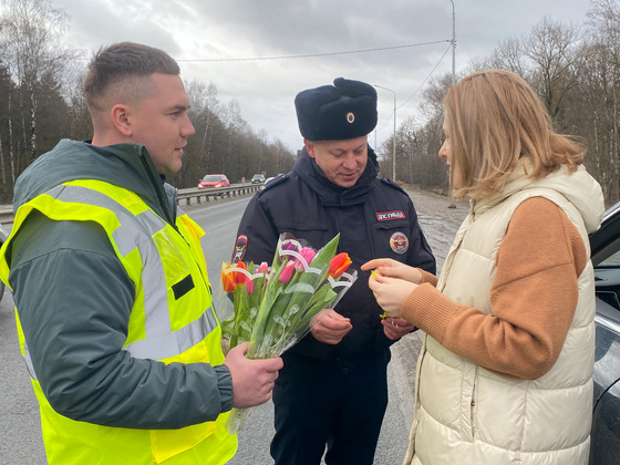 Госавтоинспекторы останавливали автомобили, где за рулем были дамы, и дарили им цветы - любимые всеми тюльпаны. Автолюбительницы не скрывали, что им было неожиданно, но очень приятно - против таких остановок стражей порядка никто бы не возражал.