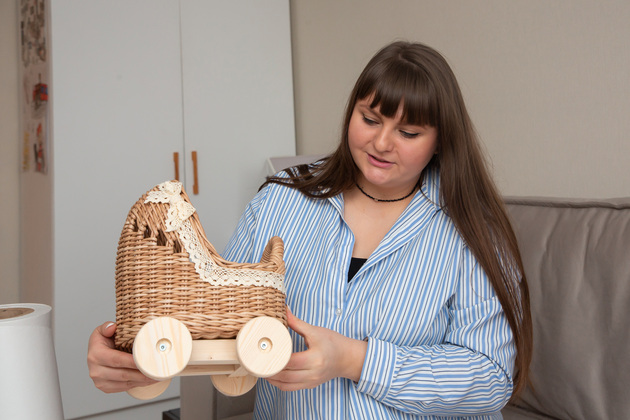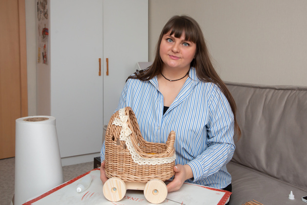 Мастерица продемонстрировала нам готовые изделия. Она специализируется на изготовлении детских игрушек. Это коляски, люльки-качалки, игрушечная мебель, кукольные домики. Дарья также освоила изготовление сувениров, корзин, цветочных кашпо и некоторых предметов мебели. Изделия получаются легкими, изящными и при этом достаточно прочными.