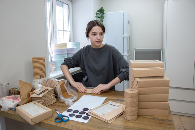 В ближайшее время кондитер собирается зарегистрироваться как индивидуальный предприниматель, что даст право нанимать дополнительных работников. Это еще один шаг в развитии бизнеса. А пока маме помогает четырнадцатилетняя дочь Маша - собирает упаковку для сладкой продукции.