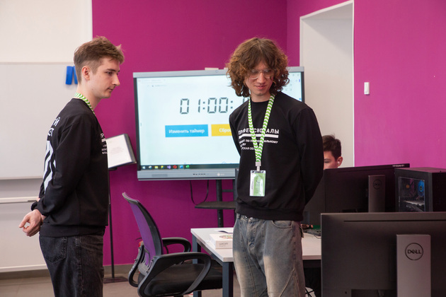 На соревнованиях «Разработка виртуальных миров» школьники моделируют сервисный центр по ремонту автомобилей. Они проектируют и разрабатывают в 3D-графике объект автосервиса. Правда, сама модель уже готова. Ребятам необходимо виртуально расставить автомобили, раскрасить их, настроить освещение, чтобы всё было максимально реалистично. Процесс происходит под чутким контролем главного эксперта Максима Огурцова.