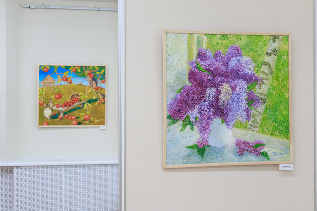 - У мужа своя техника. Он рисует в своем стиле. Я иногда рекомендую, даю советы, что надо работать стиле как бы объемной, выпуклой живописи. Таких работ было поначалу мало, но потом посоветовала ему идти в этом направлении. И получилось, пошло, - передает сурдопереводчик жестовый рассказ Ольги Фомюк.