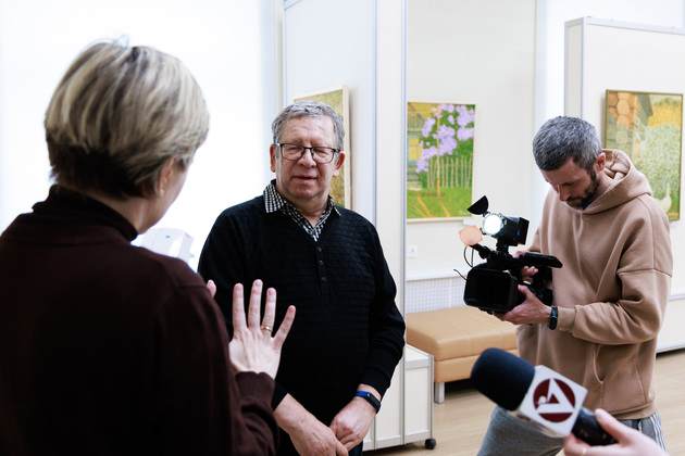 Василий Фомюк пришел на свой юбилейный вернисаж, как всегда, с женой Ольгой, тоже лишенной слуха и речи. Неразлучная пара излучает те же добрые чувства, что и полотна Василия Дмитриевича. Им хочется только улыбаться в ответ.