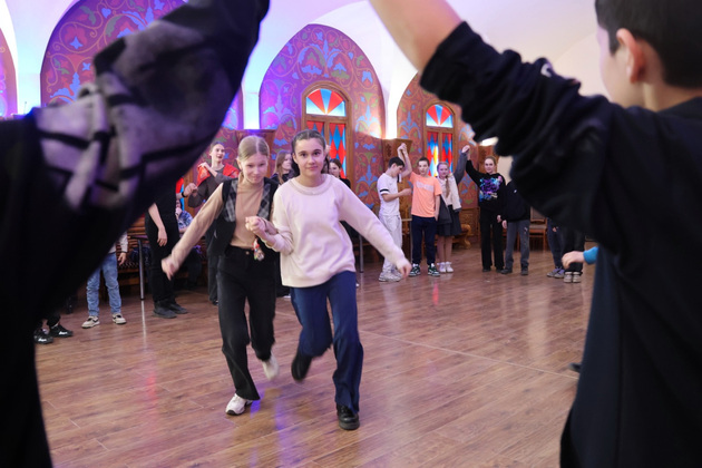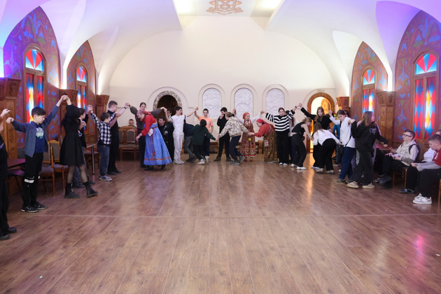 Особенным подарком для юных владимирцев стали русские игры и хороводы, подготовленные фольклорным коллективом «Владимирская вечора» под руководством Олеси Цигловой. Этот ансамбль известен своим бережным отношением к народному искусству и стремлением сохранить самобытность русского фольклора. Участники коллектива, одетые в нарядные костюмы с традиционной вышивкой, исполняют старинные песни, частушки и хороводы, передавая дух русской деревни. Особое внимание уделяется не только вокалу, но и танцевальным элементам, которые гармонично дополняют выступления. Гости фестиваля вместе «закликали весну», водили хороводы, играли в горелки и другие традиционные игры. Атмосфера радости и единства охватила всех присутствующих. Такие моменты позволили ребятам прочувствовать дух русской народной культуры через её живые проявления.