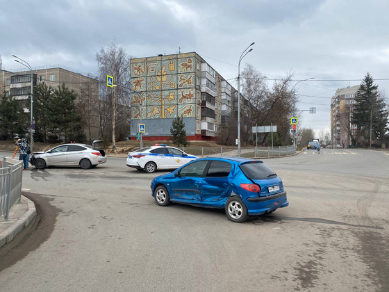 У «Пежо» большие вмятины на боку, куда прилетела иномарка.