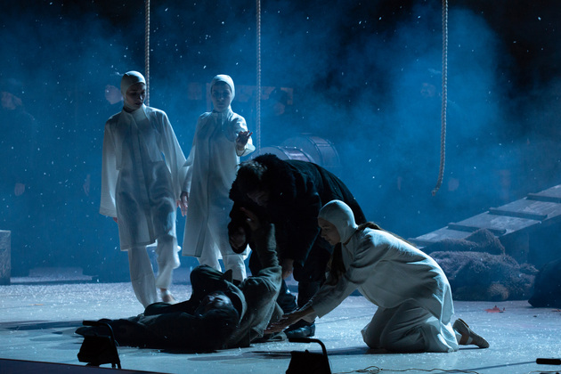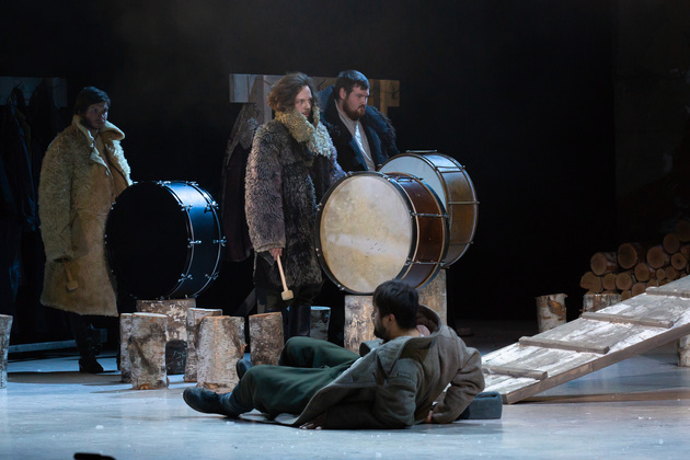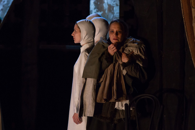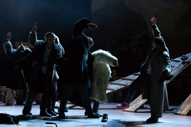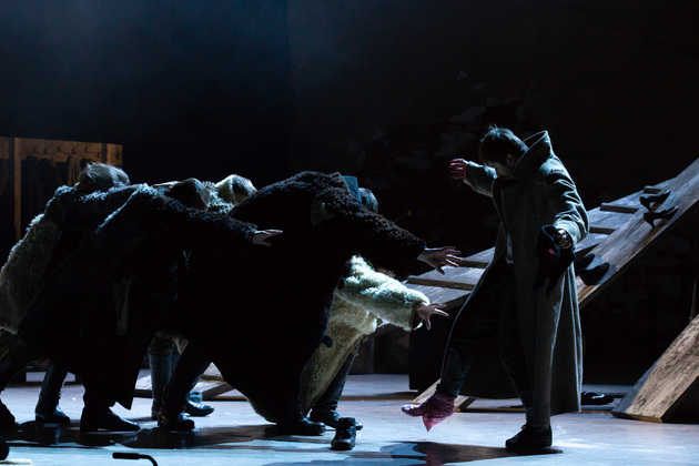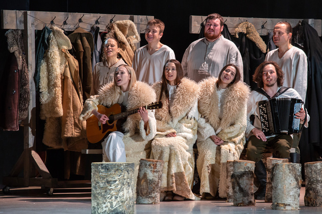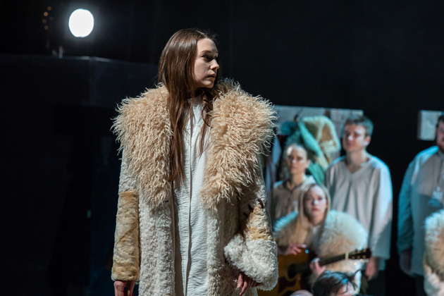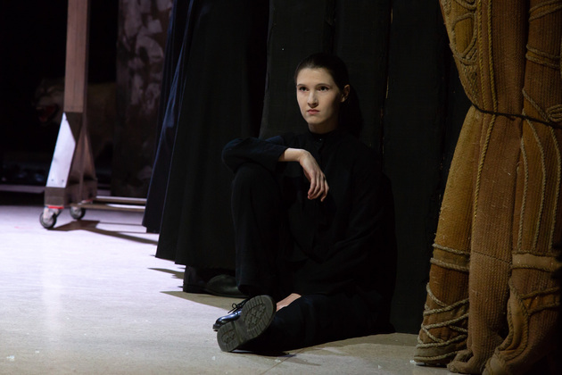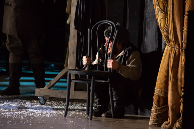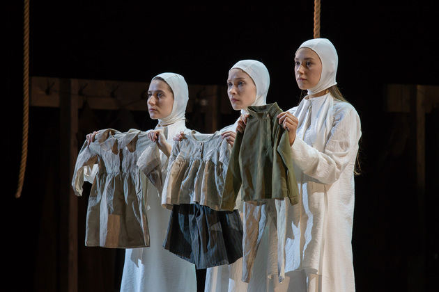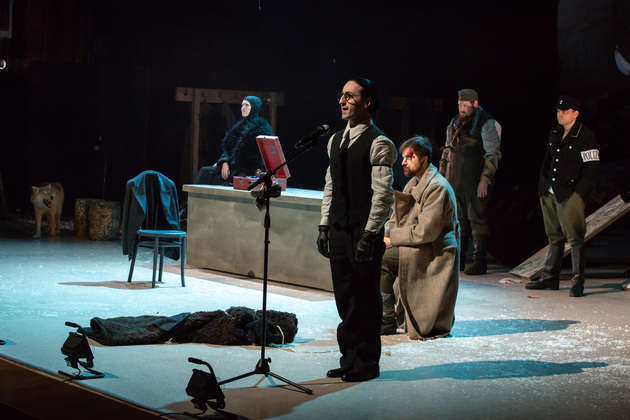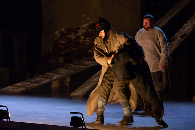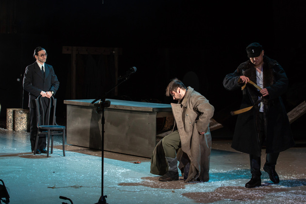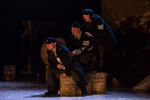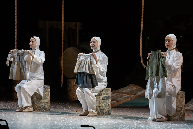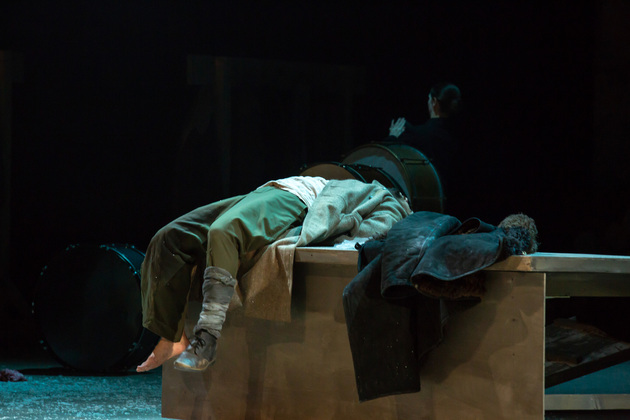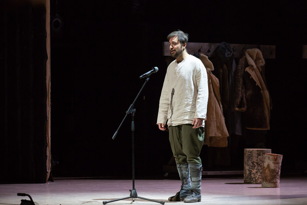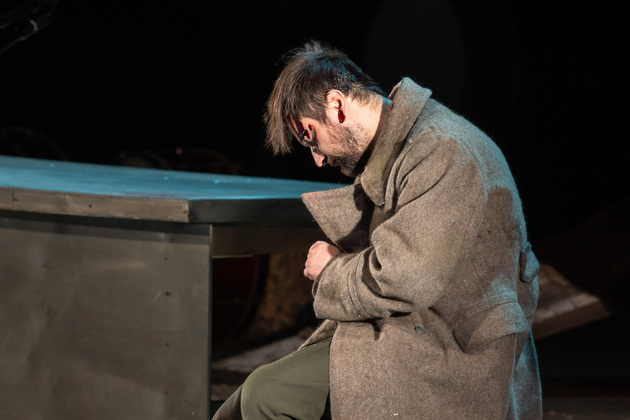 – Хочу сказать, не побоюсь этого слова: война становится для него не событийным фактором, а предлагаемыми обстоятельствами. В центре – человек, который делает выбор между добром и злом, правдой и ложью, белым и чёрным. Герои становятся идеями, как у Достоевского. Фактически у нас получилось нечто вроде «Божественной комедии». Мы стремились создать экзистенциальное пространство, попытаться выйти в метафизику, – отметил режиссер. – У меня большой опыт военных постановок. Десять лет назад в нашем театре я ставил «Молодую гвардию», был спектакль о блокадном Ленинграде, работал в других городах, озвучивал стихи. Но здесь мне хотелось открыть в себе что-то новое как режиссёру, который изучает театр через человека. На репетициях я иногда сопоставлял себя с героями и задавал себе вопросы: «А я-то как бы поступил? Смог бы остаться героем?» Мы все сейчас на словах прекрасные, да? Говорим о своей гражданской позиции, и это замечательно. Но как ты себя поведёшь в этих обстоятельствах – на грани жизни и смерти? Ты не знаешь, пока не столкнёшься. И вот это огромное испытание для души. Фактически, к этой душе мы и пробивались.