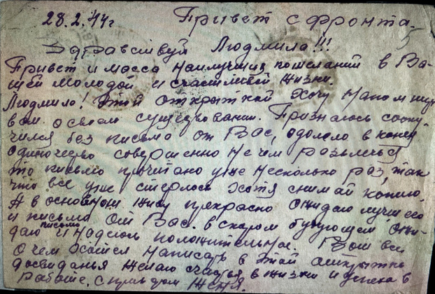 28 февраля 1944 г. Привет с фронта! Здравствуй, Людмила!!!