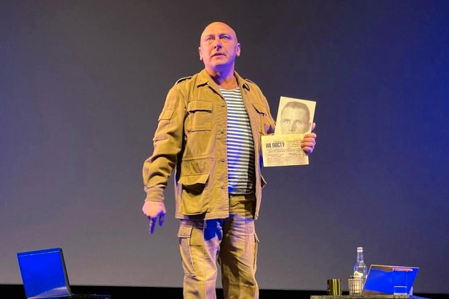 Артисты драмтеатра также представили спектакль «Vозле синих Zвёзд» по пьесе Андрея Кулагина, где занят Юрий Круценко. Он в образе мужчина-воина ведет разговор со зрителями о вечных ценностях.