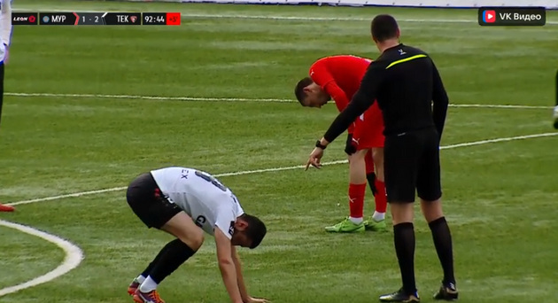 В первом тайме произошел редкий случай - замена главного арбитра. Быстро перемещаясь за игроками в интенсивной игре, Максим Курочкин из Владивостока, видимо, травмировал ногу и попросил резервного судью Сергея Федотова из города Павлово заменить его.