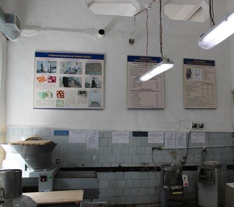 Проверяющие обратили внимание на покрытие стен на кухне пищеблока. Оно имеет дефекты, что противоречит требованиям санитарно-эпидемиологических норм.