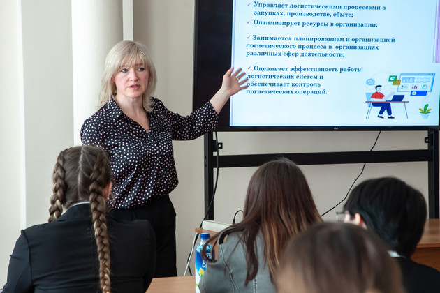 А доцент и старший преподаватель кафедры коммерции и гостеприимства Ирина Наумова и Наталья Изюмова познакомили школьников с основами логистики в деловой игре «Выстраиваем оптимальный маршрут».