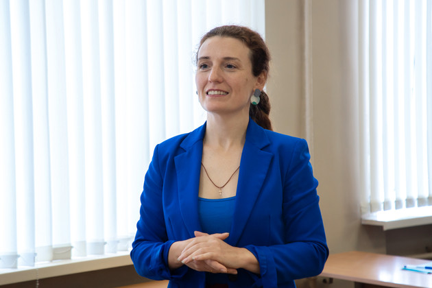 Доцент кафедры менеджмента и маркетинга Мария Рахова заинтересовала юных гостей вуза деловой игрой «Пройди отбор в лучшую компанию страны».