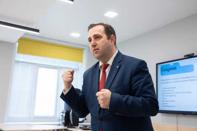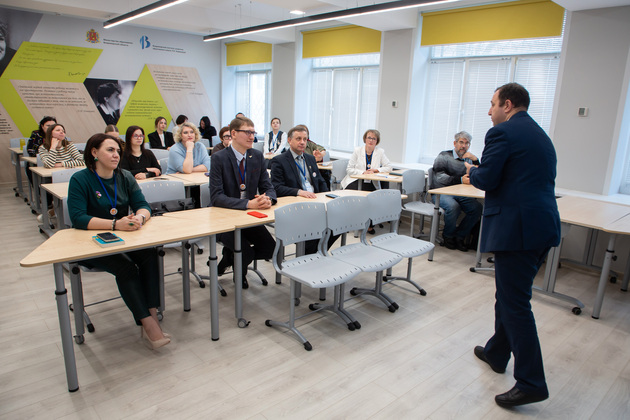 Слушателями и активными участниками мастер-класса стали конкурсанты-предметники. А выступил Сергей Курасов на тему исторических и педагогических стереотипов, которые влияют на работу учителя.