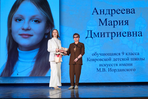 - Сегодня вы получаете очень значимую награду - стипендию «Надежда Земли Владимирской», - присоединилась к поздравлениям заместитель регионального министра культуры Елена Соскова. - Наш регион богат традициями, имеет уникальную творческую среду. Каким наш регион станет в будущем - зависит от вас. Желаю, чтобы ваши яркие таланты сохранялись и приумножались, чтобы вы стали лучшими в своих профессиях!