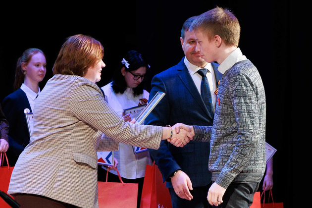 Кульминацией Областного урока мужества стало награждение школьников, победителей творческих конкурсов, и чествование ветеранов СВО, участников уроков Победы. В рамках патриотической акции состоялся концерт.
