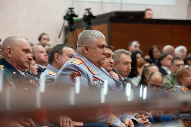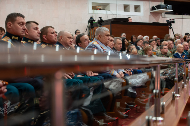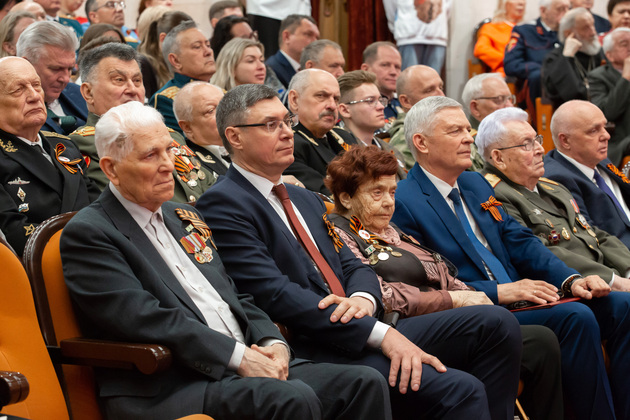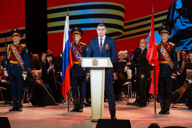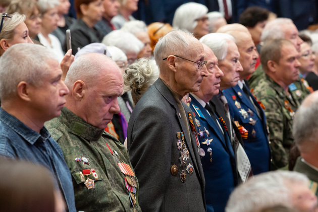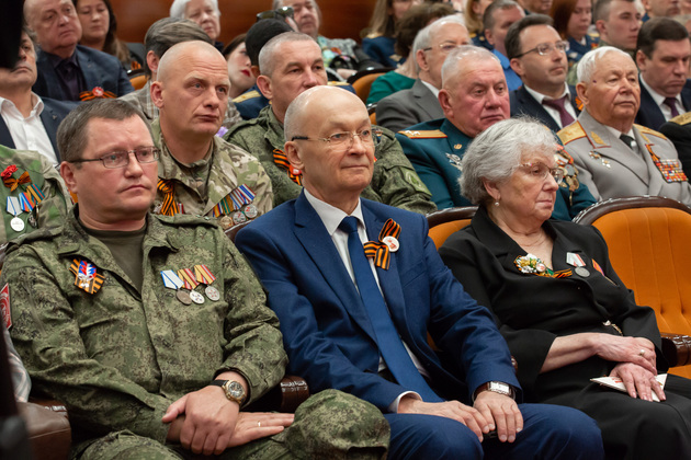 Губернатор Владимирской области Александр Авдеев обратился к собравшимся, отметив, что в этот день в зале присутствуют защитники Родины разных поколений – ветераны ВОВ, труженики тыла, а также родные и близкие нынешних участников специальной военной операции.