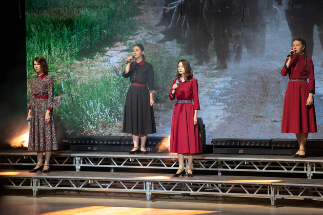 Мероприятие открылось исполнением песни «Баллада о солдате» (Шел солдат), которая задала торжественную и проникновенную атмосферу. После этого зрителям был продемонстрировано видео, рассказывающее о ключевых вехах Великой Отечественной войны – значимых датах сражений, освобождении городов и других важных событиях, которые определили ход истории.