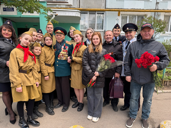 Началось мероприятие с выноса знамени, после чего сотрудники УМВД России по городу Владимиру и учащиеся профильного направления из Владимирского техникума экономики и права вместе с юнармейцами прошли строем мимо ветерана, отдав ему воинское приветствие.