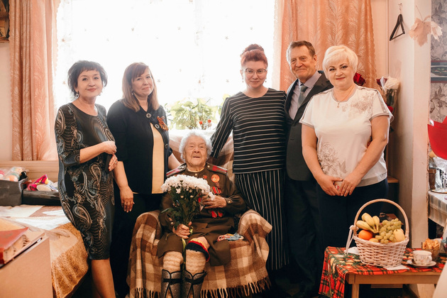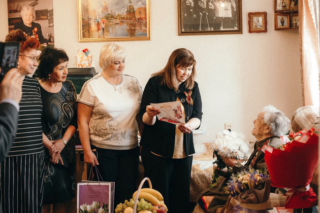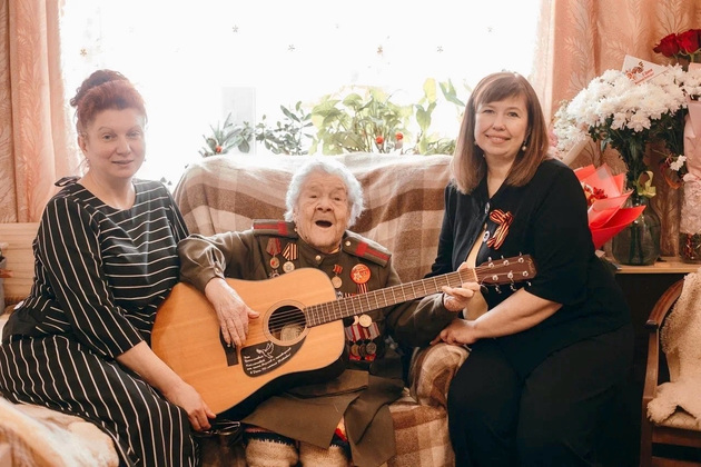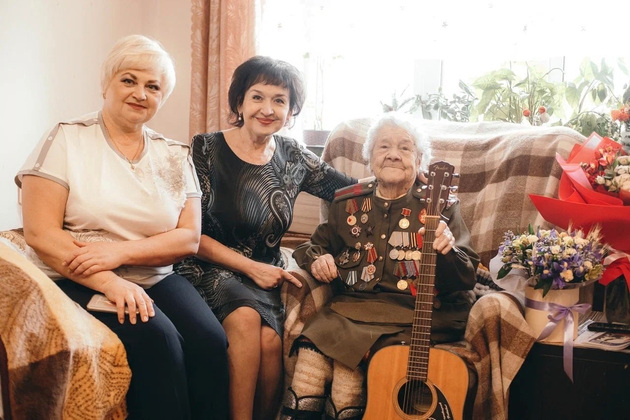 С Днём Победы ее пришли поздравить и.о. министра регионального здравоохранения Любовь Баусова, главный врач Центральной поликлиники Елена Овчинникова, коллеги из Минздрава и поликлиники. Зоя Васильевна взяла в руки гитару и исполнила свою любимую песню - "День Победы" и гости подпевали ей.