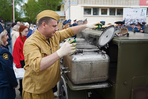Для прохожих была оборудована полевая кухня с пирогами, горячим чаем, солдатской кашей и картошкой. Большой интерес у взрослых и детей вызвала машина ГАЗ-АА - знаменитая «полуторка», которая в 1941-1945 годах сыграла ключевую роль в обеспечении Красной армии и тыла, став настоящим тружеником войны. Ее использовали для перевозки грузов, боеприпасов, продовольствия, раненых и даже в качестве шасси для установки зенитных пулеметов и реактивных установок «Катюша». Автомобиль разместили на площадке, где состоялся праздничный концерт, как один из незаменимых символов народного подвига.